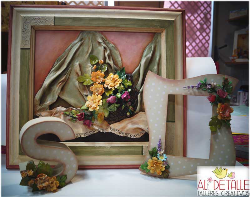 Trabajos con masa de porcelana, con estaño repujado,