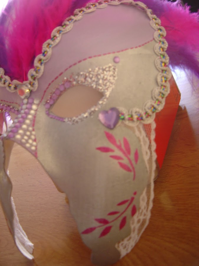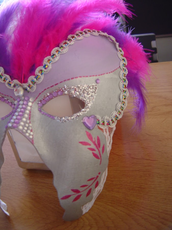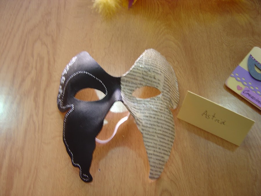 Esta vez como carnaval esta a la vuelta de la esquina, se propuso que decoráramos a gusto del consumidor una mascara. La verdad es que ha sido muy curioso ver como cada una a plasmado sus gustos y su personalidad en las mascaras. Todas han sido preciosas, como podréis comprobar, pero una a sido la ganadora por votación nuestra y la verdad es que a sido bastante unánime.