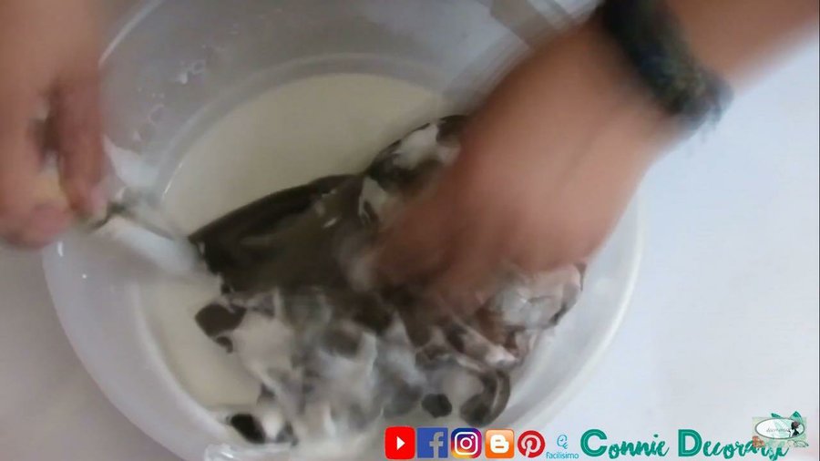 Haremos una mezcla de pegamento blanco con alcohol, y agua, lo incorporaremos muy bien.