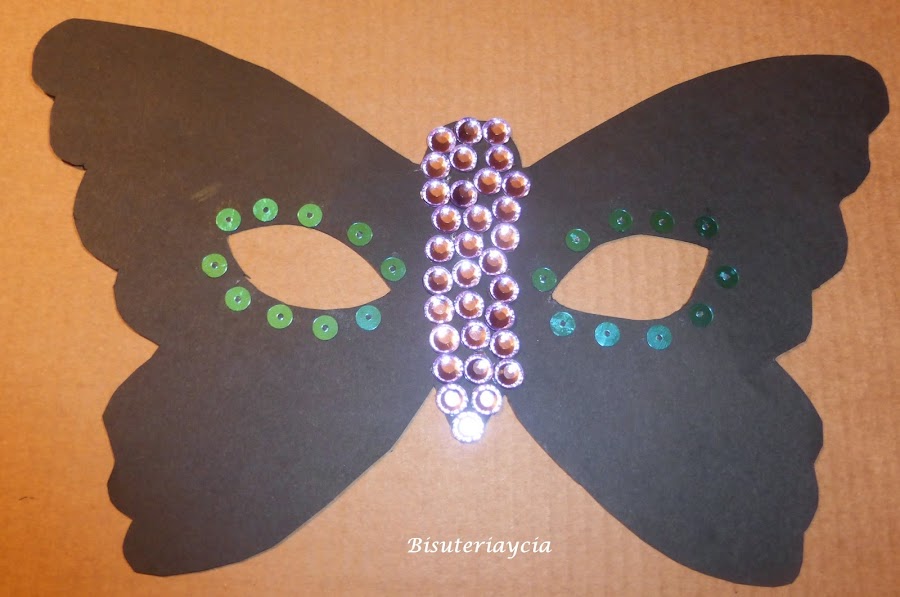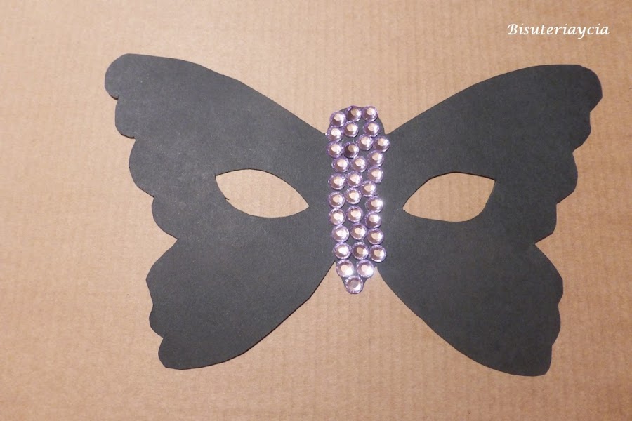 Para decorar el centro de la mascara usamos cristales Hotfix, podéis encontrarlos en tiendas de manualidades incluso en bazares.