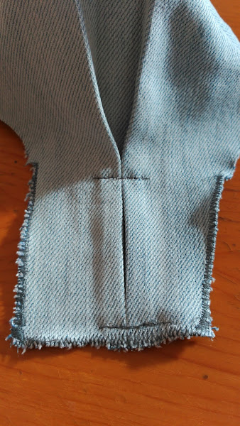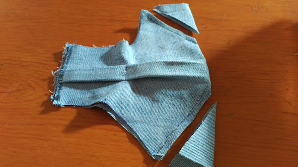 Doblar cada patilla sin llegar al tejido interior y coser.
