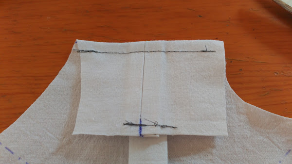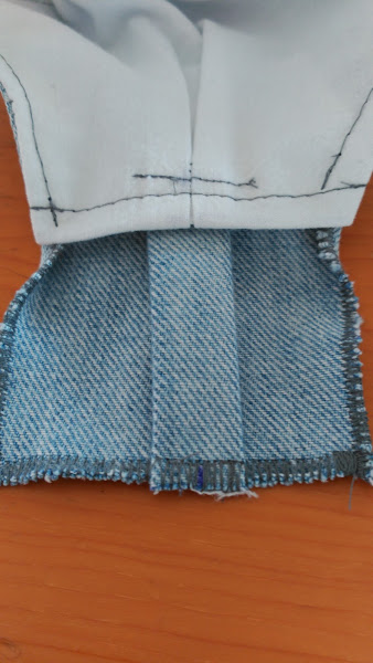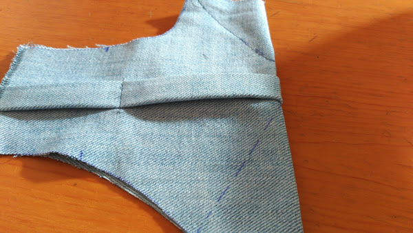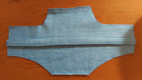 Hacer los pliegues centrales uniendo las dos marcas de los costados con una puntada y marcar la forma con la plancha.