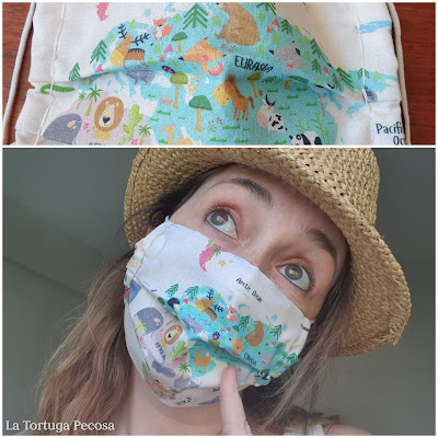 Hoy os traigo esta mascarilla de mapa mundi de viajes, 100% algodón, tipo acordeón, con adaptador de nariz y con filtro tnt para luego cambiar.