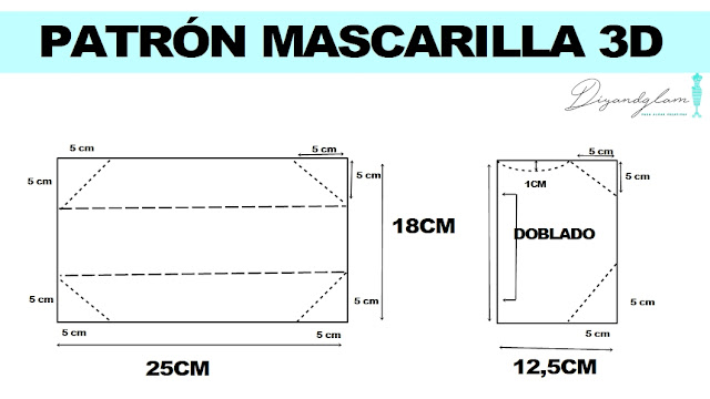 Para hacer esta mascarilla he utilizado la tela estampada. El patrón lo vamos a confeccionar nosotras mismas. Es muy sencillo, aquí abajo te dejo el patrón