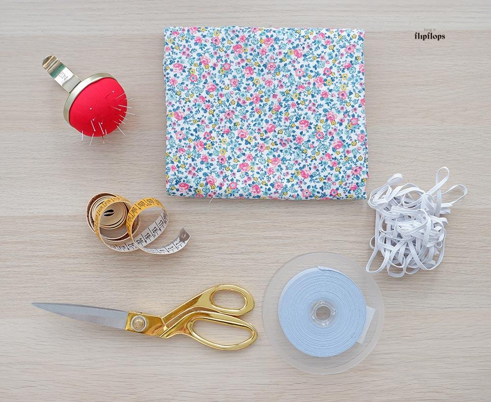 Biés: corta dos trozos de de 80 cm de lardo. Si no tines biés crea tus cintas, corta dos rectángulos de 80cm de largo por 4 de ancho