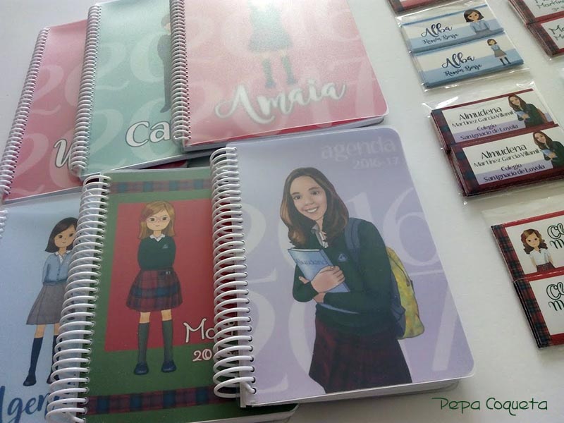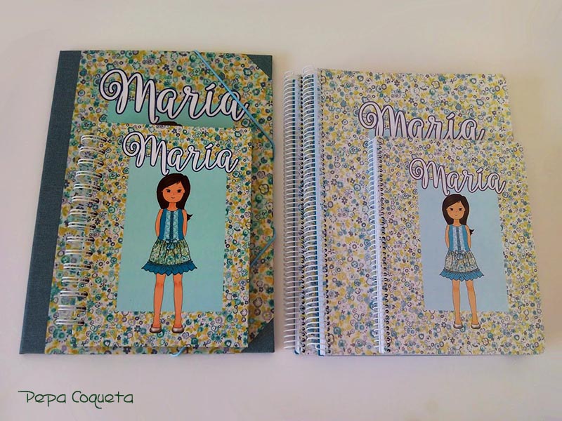Os enseño algunas fotografías de carpetas, cuadernos, agendas y etiquetas: