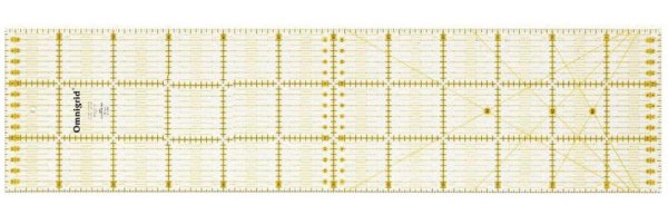 Las reglas de patchwork son más gruesas que las reglas normales, y vienen impresas con medidas y líneas, igual que las bases de corte. Son de un plástico rígido, para que nos entendamos, y vienen en muchíiiiisimas medidas.