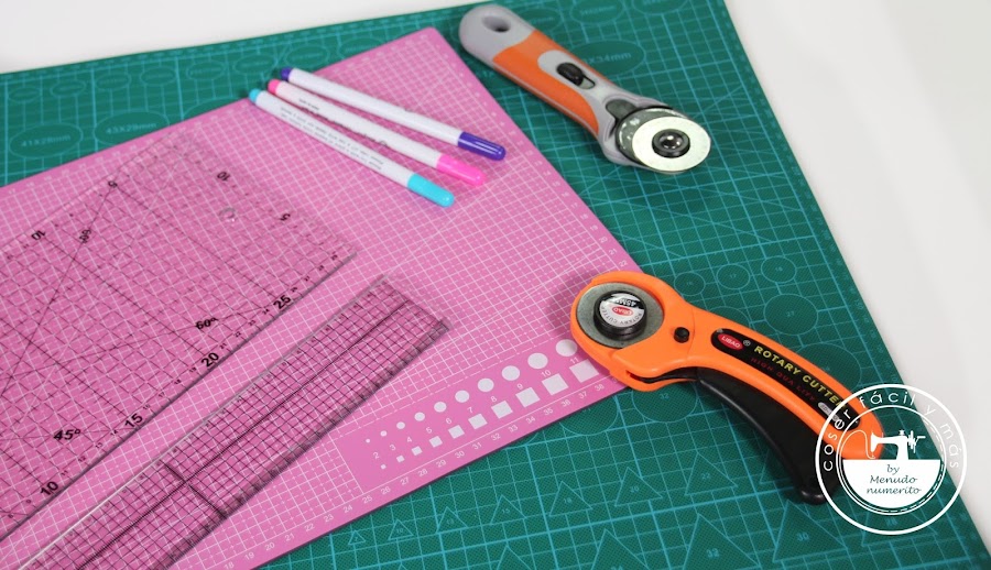 Hoy vemos tablas de corte o bases de corte, cutters rotatorios, marcadores al agua, reglas de patchwork anchas y estrechas y packs de telas precortadas en varios tonos. En la casilla de información del propio vídeo en YouTube vas a encontrar enlaces para adquirir estos productos en la tienda online de Banggood (lee bien la información del vendedor si vas a hacer un pedido).