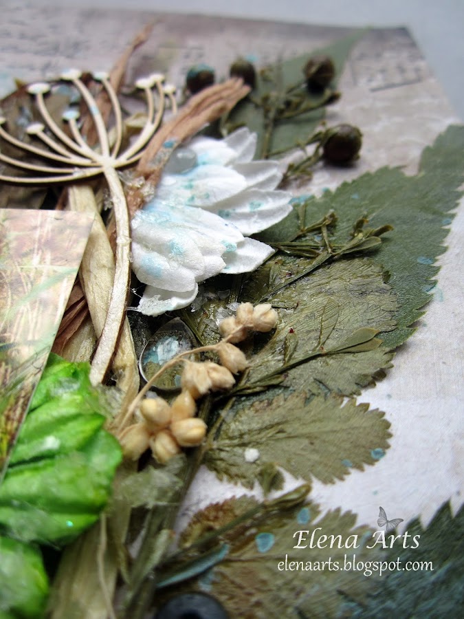 Otra opción es muy barata y además ecológica! Podemos utilizar todo el tipo de plantas y flores secas, herbario que podemos preparar nosotras mismas. En otoño es muy fácil, solo tenemos que ir a un parque y recoger de la tierra algunas hojas caídas. Después las secaremos aplastándolas entre las ojas de un libro y el "material" está listo para nuestras creaciones.