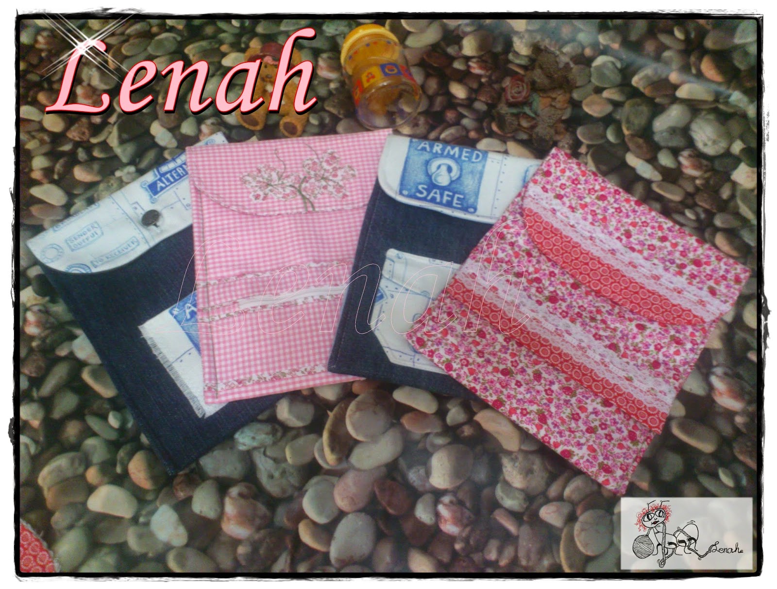 Últimamente estoy haciendo muchas fundas porta documentos. Se puede usar para la cartilla sanitaria del bebé, pero también sirve para las notas del cole, para guardar las cosas importantes, o por el simple y puro placer de tener una funda con nuestro nombre. Me apetecía hacerla en tonos discretos, y mezclar lunares con pata de gallo, y ya de paso, usar las últimas telas que he comprado. Por detrás ...
