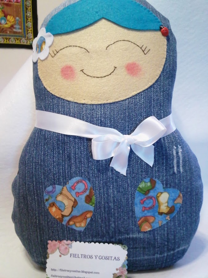 Lo prometido es deuda , aquí están las matrioskas vaqueras en las que he estado trabajando, espero que os gusten , la grande es un regalito para mi Marta, se la tengo preparada con alguna que otra cosilla de regalo para cuando vuelva de sus vacaciones en el pueblo con mis padres...besitos a todas/os