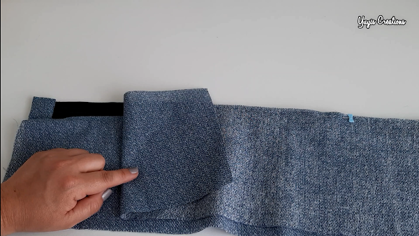 Ahora es el momento de coser la cremallera, vamos a colocarla con los dientes hacia abajo y en el lado del derecho de la tela, al momento de coser, apartamos un poco el embellecedor que le hicimos a la cremallera y cosemos recto hasta el final.
