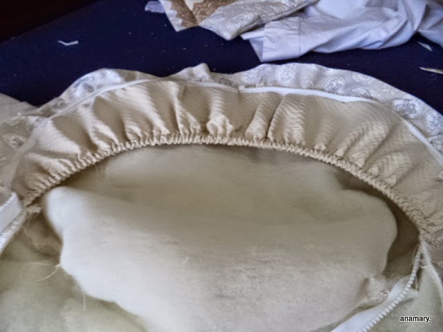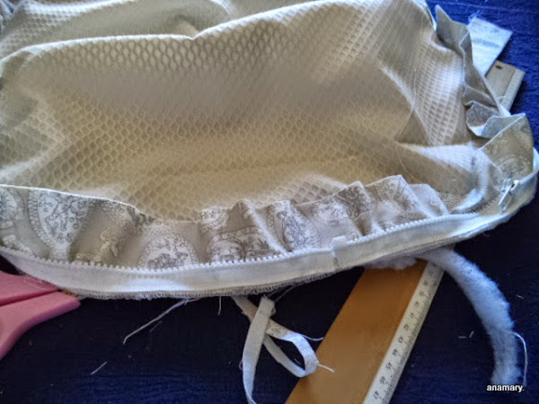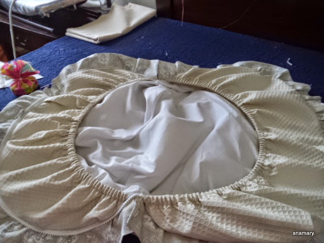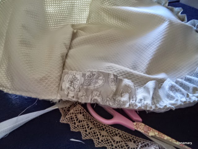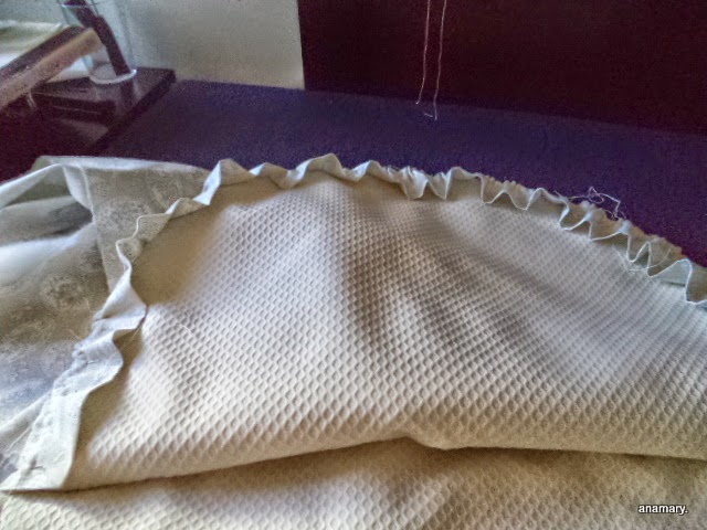 ahora cosemos el volante ...yo lo hice en tela doble (la de los medallones ..)