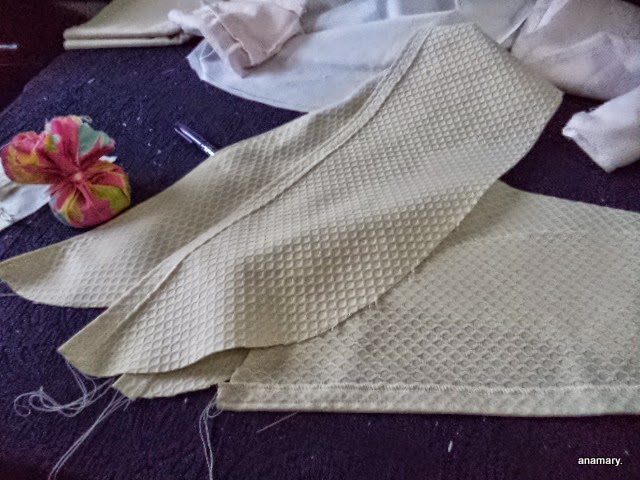 para que sea más fácil de trabajar podemos unir la tela y la guata con una costura de zig-zag o si tenemos remalladora lo remallamos...