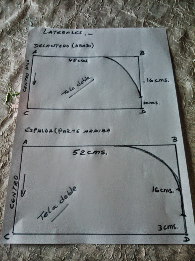 patrón laterales ...estas partes son las que van sujetar la funda al maxicosi...cortamos dos de las siguientes medidas...