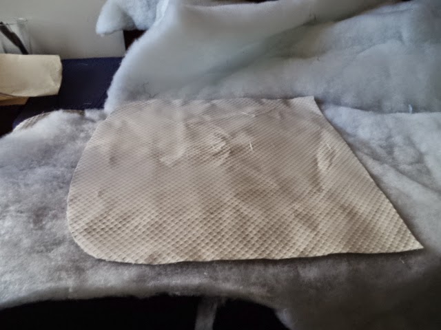 preparamos el forro,colocando en la parte superior el esbozo y hacemos las pinzas como en la tela