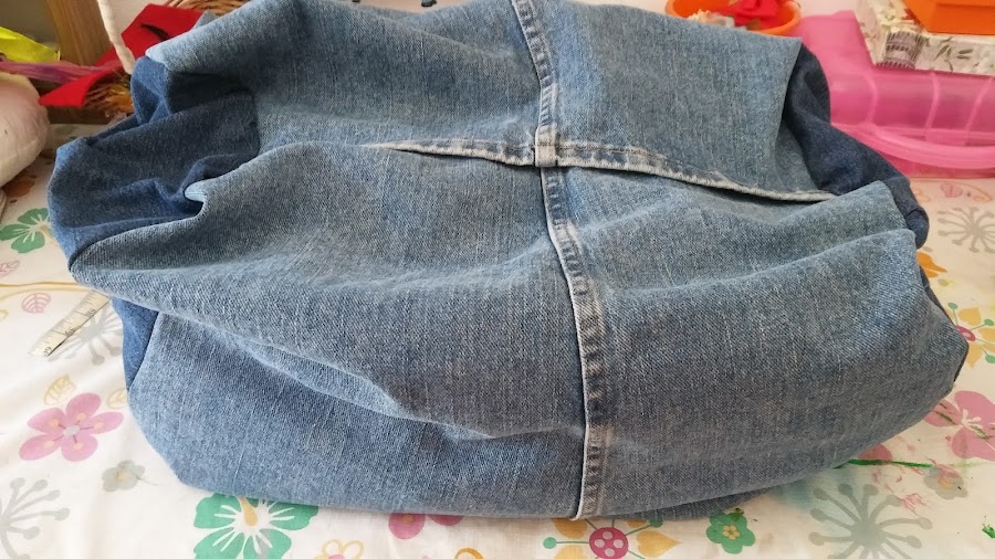 Me hace ilusión aparte de que recicle la mezclilla me he hecho de una maleta que me hacía mucha falta para guardar mis telas.