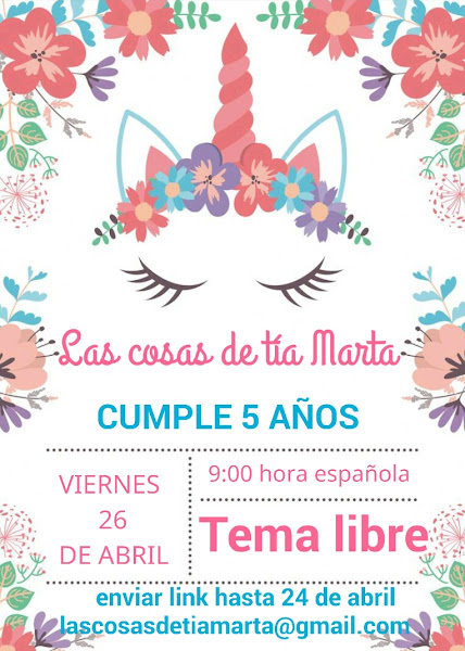 Os recuerdo que en unos días este blog se vestirá de gala, para recibir a amigas con las que celebrar mi 5° cumpleblog. Os espero.