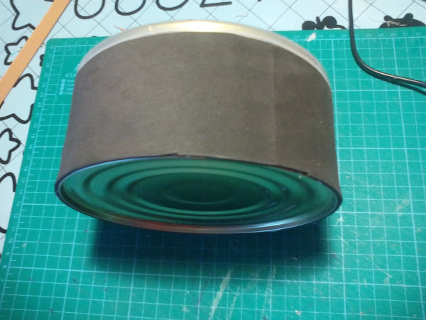2. Limpiamos la lata de conserva y la forramos con una tira negra de goma eva.