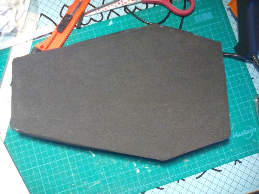 4. Pegamos todo alrededor de la base de nuestro ataúd, así tendremos la base terminada.