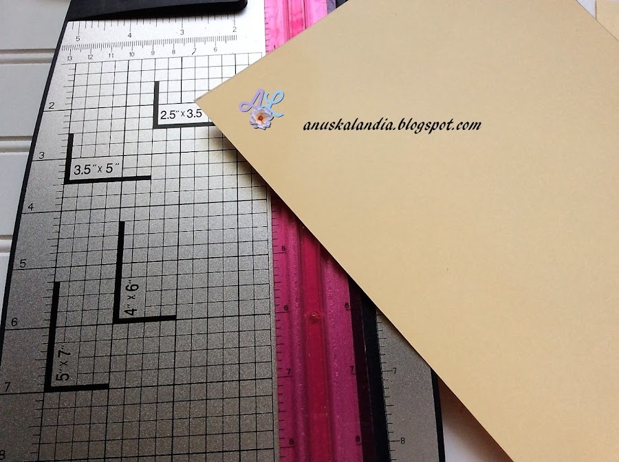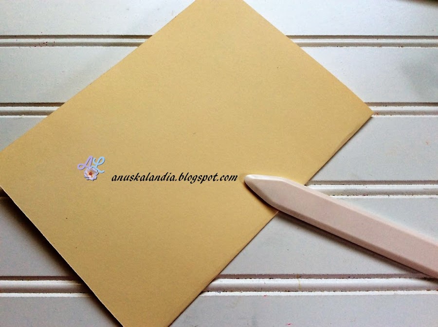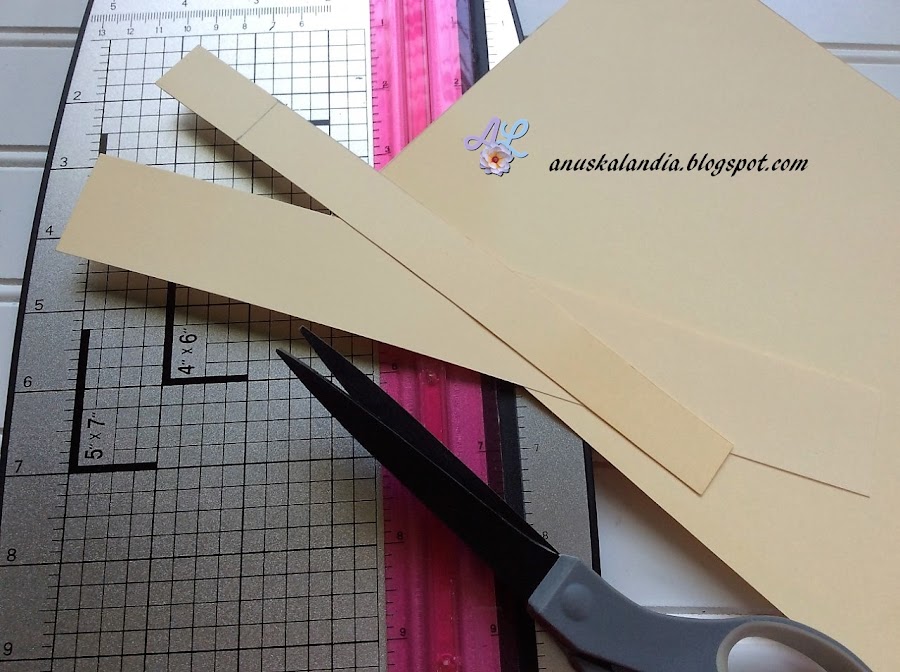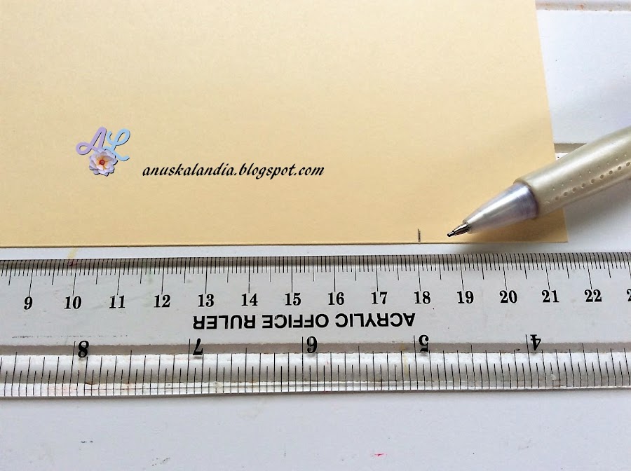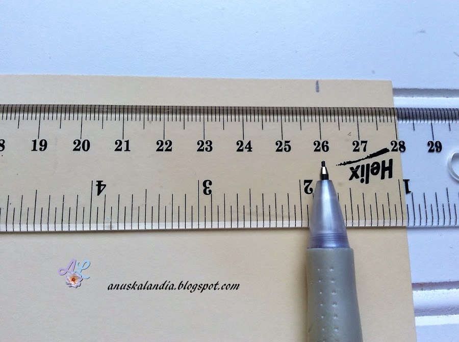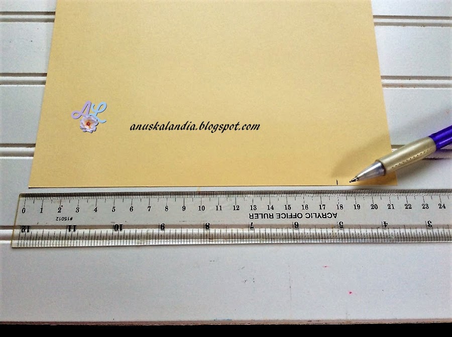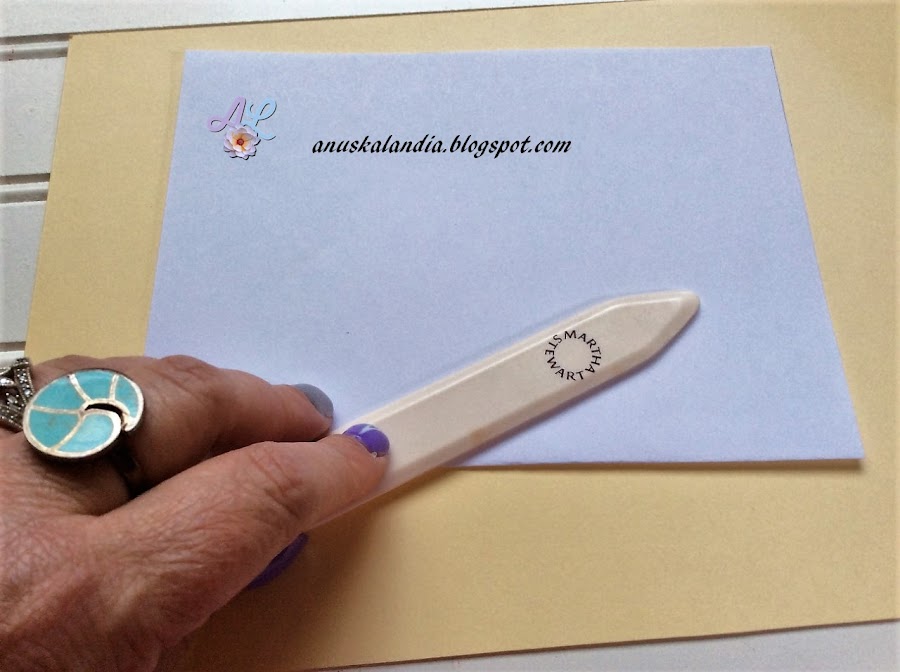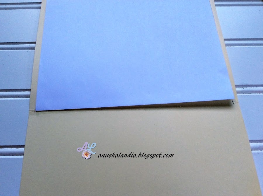 3.- Pasamos al montaje de la tarjeta, parte cartulina papel. Doblamos ambas piezas a la mitad. Cómo la cartulina tiene 1 cm. más, vamos a marcar a 1/2 cm. en ambos lados, para que nos quede completamente ajustado.