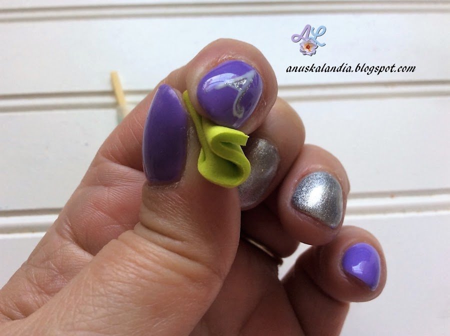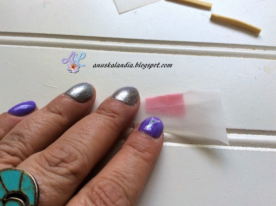 - Sombrilla: La pieza la estrujamos, con el calor de la mano se arrugará un poquito. Cortamos un trozo de alambre, lo pegamos en la parte posterior e introducimos de igual manera que la pajita. (no hay foto de este paso ¡Despiste!)