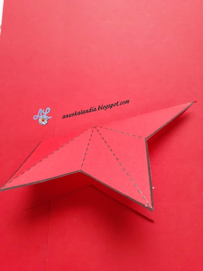 Imprimimos el molde, en el color de cartulina de nuestra preferencia, dos veces. Con el boleador de manicura u otra herramienta, utilizado una regla, marcaremos todas las líneas discontinuas. Procedemos a doblar. Nos tienen que quedar los dobleces como se ve en la foto.