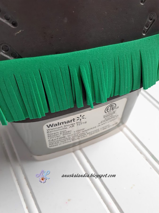 3.- Ponemos la plancha a calentar. Vamos colocando por tramos la goma eva, justo hasta que veamos que se separa de la plancha. El tiempo para que suceda esto, es de aproximadamente 45 segundos, esto dependerá de cada plancha.