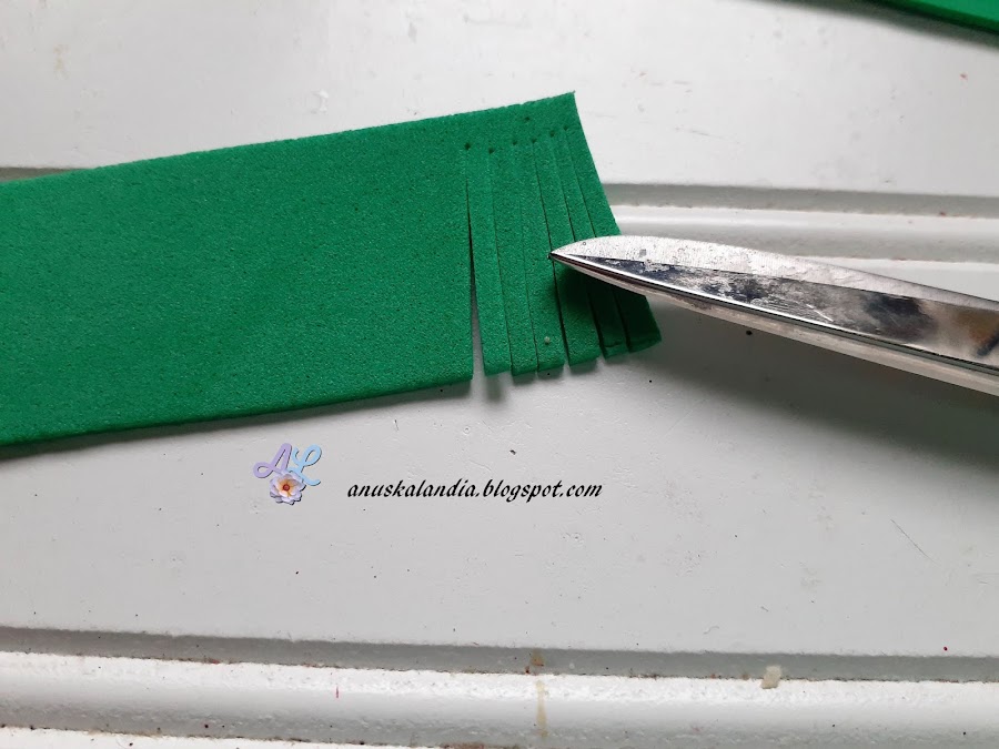 2.- Con las tijeras, daremos cortes como se aprecia en la segunda foto.