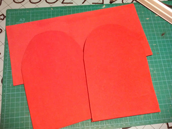 1. Cortamos las plantillas en goma Eva de dos colores y forramos los cartones.