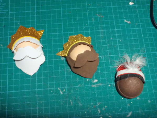 6. En cada "ventana" vamos a colocar un rey mago, para ello forraremos media bola de porex de 40 y decoramos.