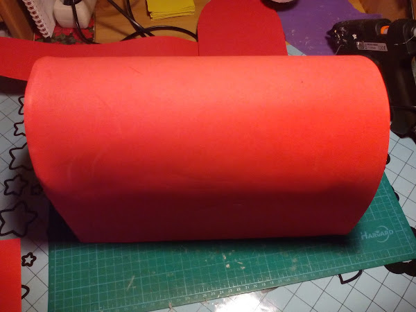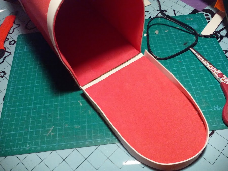 2. Ahora haremos la estructura, uniendo con un pliego de goma Eva de 32 * 49 cm. Para ello pegamos sólo uno de los lados del buzón, el otro será la puerta.