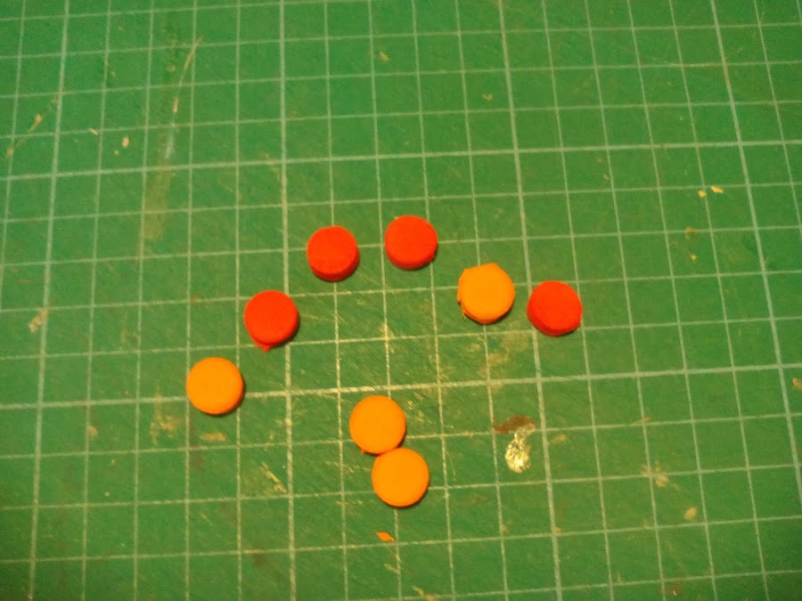 7. Con unos tapones de un brick de leche, unos círculos de goma Eva de color naranja y roja de 5 mm de grosor, letras y recortes negros y grises terminaremos de dar forma a nuestro autobús.