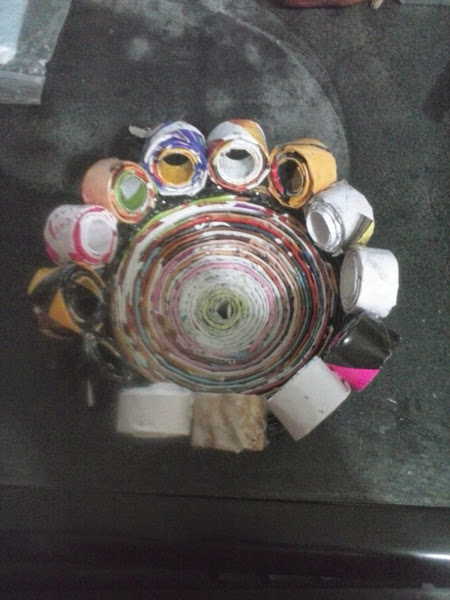 Asi que como ando en la locura de reciclaje de papel periódico y aprender hacer cestos... esta es mi primera incursión (fallas incluidas )