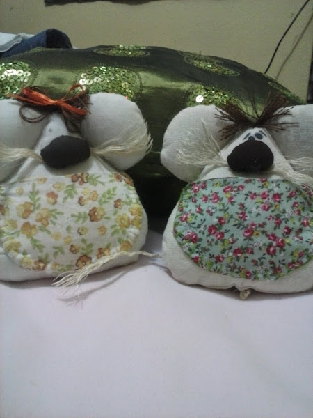 Ratoncitos Pérez versión niño y niña ( los ojitos pendientes, que no me decido si pintarlos o coserlos )