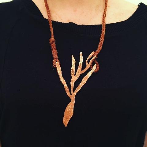 La joyería textil incluye una suma de materiales que se van engarzando, trenzando, y armando con elementos que son tradicionales para la joyería como los metales y las piedras. En esta muestra se agregaron un montón de otros materiales, como papel prensado, hilos de algodón, perlas de río, lana afieltrada, hojas de palmera, hilo de chaguar.