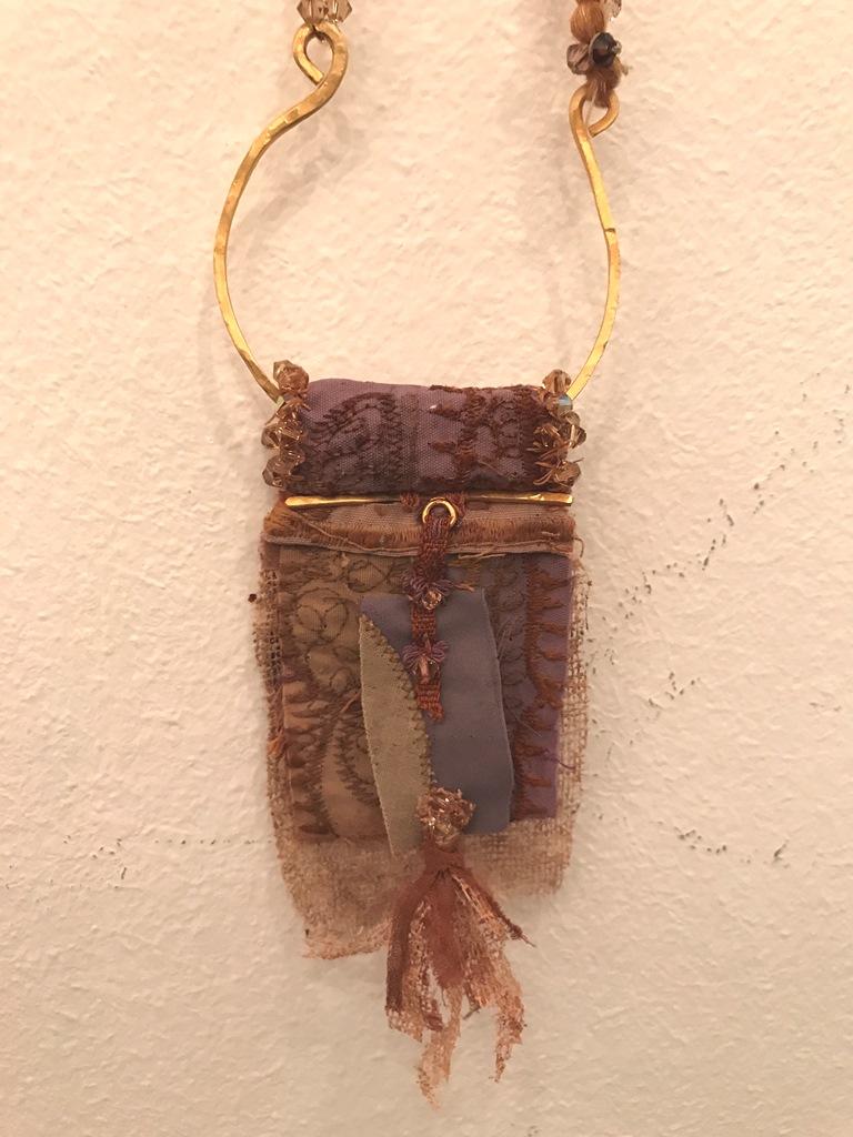 Textiles que se mezclan con metal brillante, y con metal dorado opaco; cuerdas y cordones que se anudan para sostener piedras que bailan y brillan dando destellos inigualables de luz. Todos esos misterios se conjugaban en los trabajos. Aquí van más de ellos: