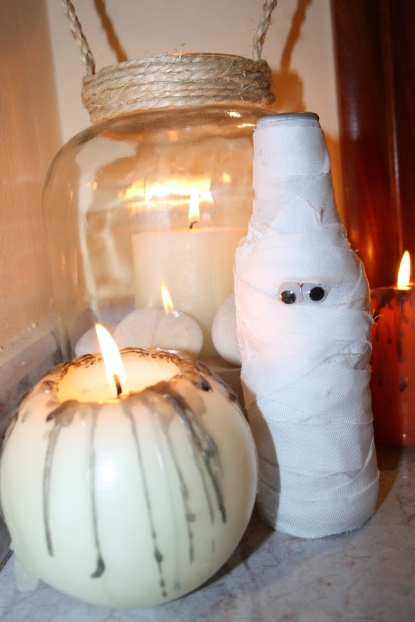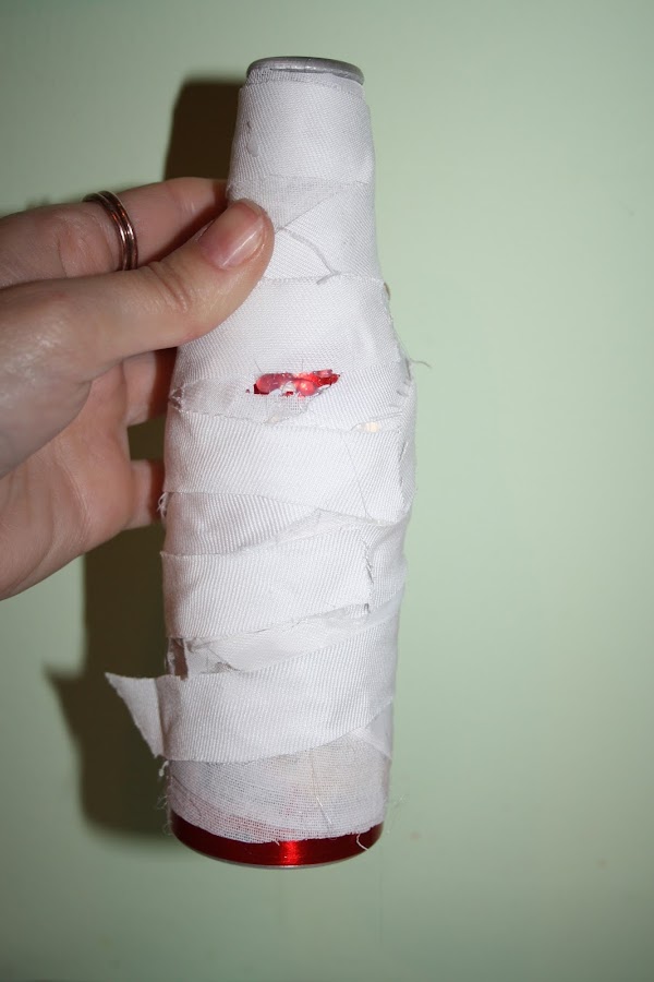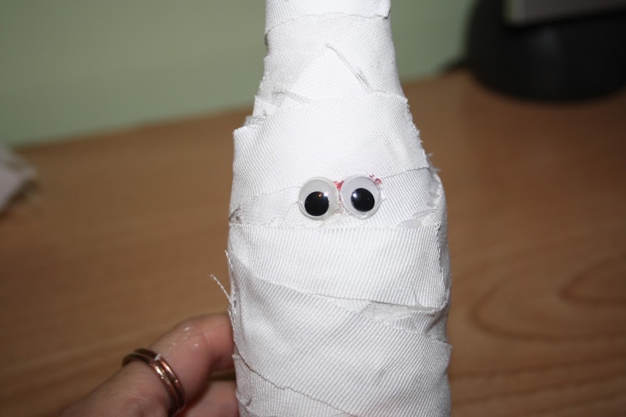 Para este reto, había pensado en reciclar una de esas botellas en un elemento decorativo para Halloween, puesto que quedan pocos días para vivir una de las noches más terroríficas y mágicas del año. Y se me ocurrió hacer una momia.
