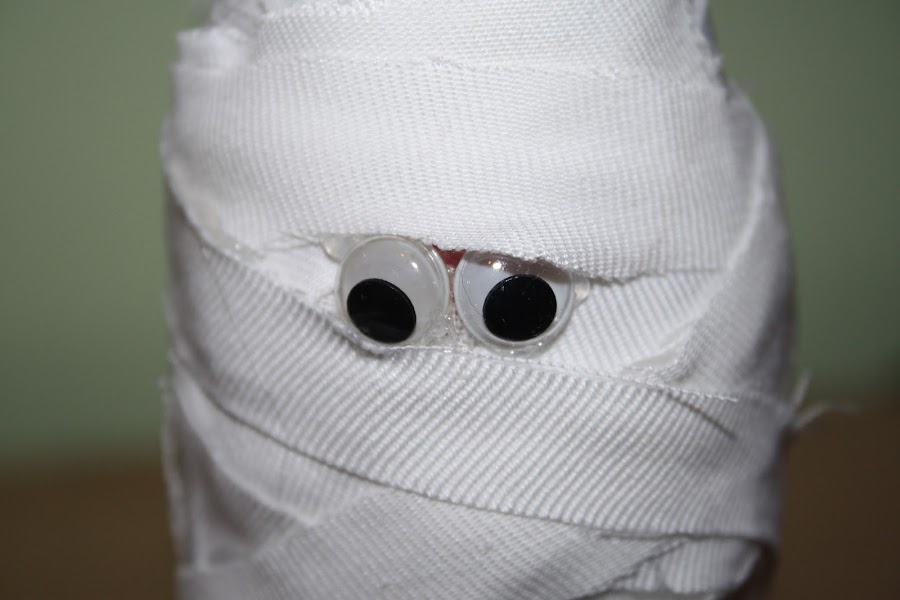 Y ya tenemos acabada nuestra pequeña momia para decorar esos rincones más oscuros y tenebrosos de nuestra casa.... buuuuuuu!!!!!!