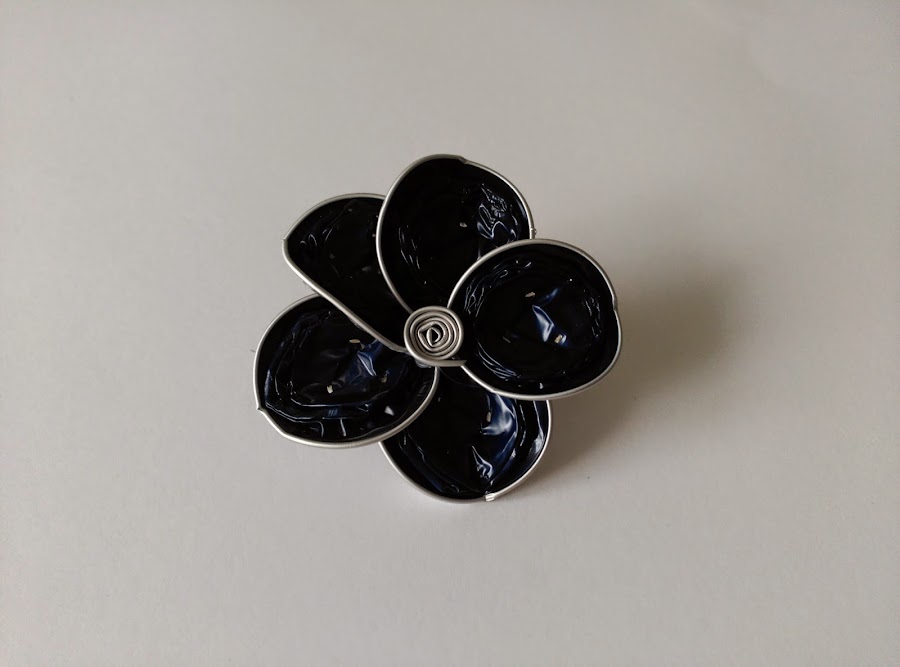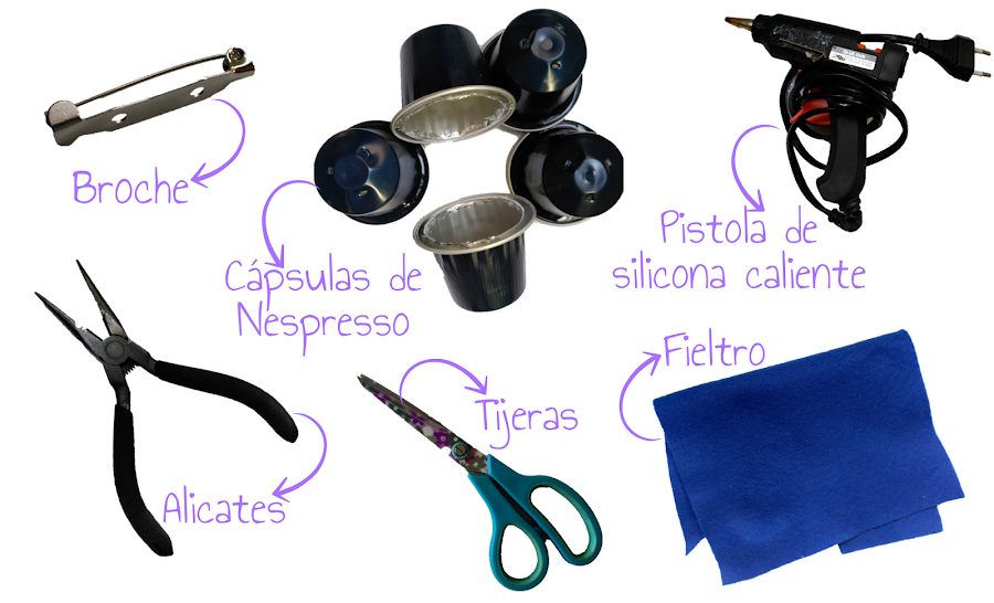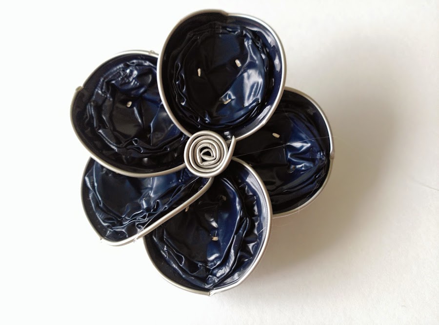Mi propuesta es un broche en forma de flor hecho con cápsulas de Nespresso.