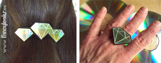 Y ya tienes en tus manos un precioso "diamante" que te servirá para hacer distintas piezas de bisutería. Yo lo he pegado a una base de anillo, también he probado a hacerme unos diamantes y una hebilla o pasador del pelo, sin duda mi favorito. Mira el video para ver en más detalle cómo los hice y deja volar tu imaginación. ¿Qué te gustará hacer a ti? Con el esquema grande de 5 cm puedes hacer un colgante estilo rapero o puedes decorar una diadema, incluso una pulsera de madera, un joyero... busca la inspiración en las cosas que te gustan y se te ocurrirán ideas bien chulas!