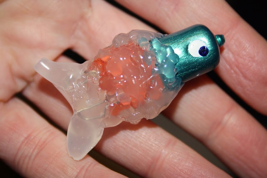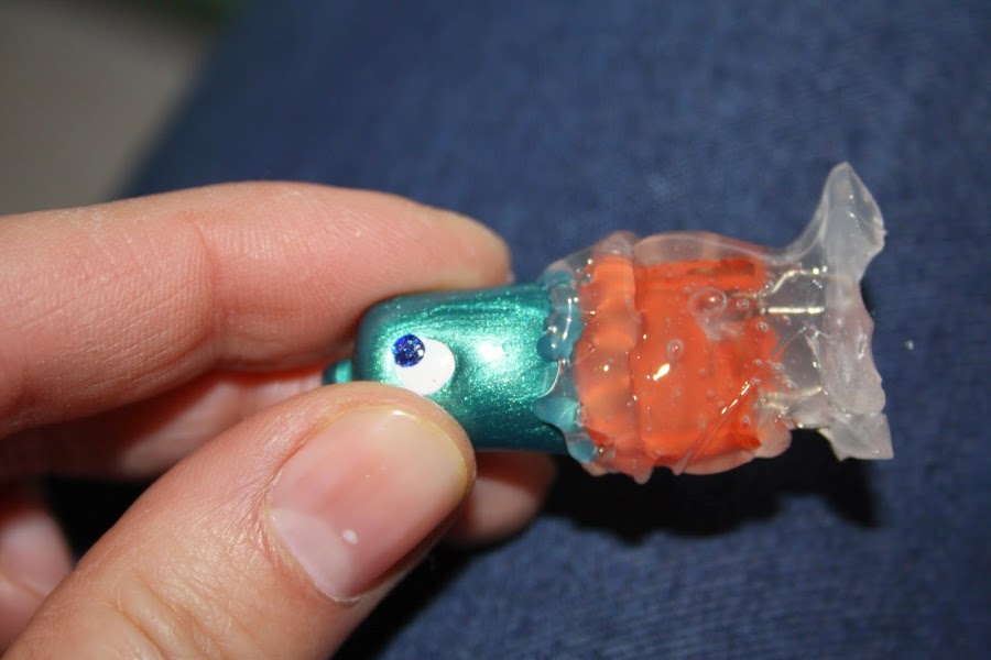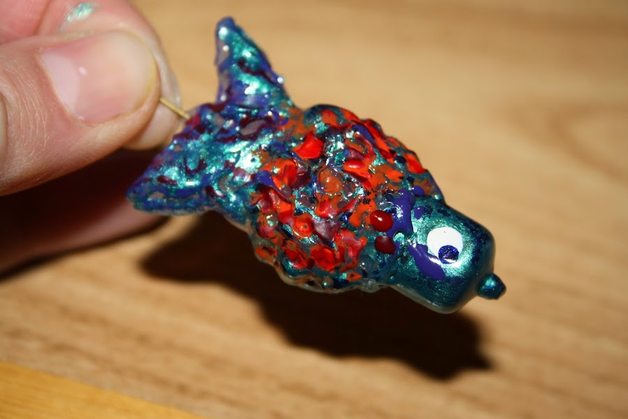 Como veis le dí varias capas de pintura simulando un pececillo.
