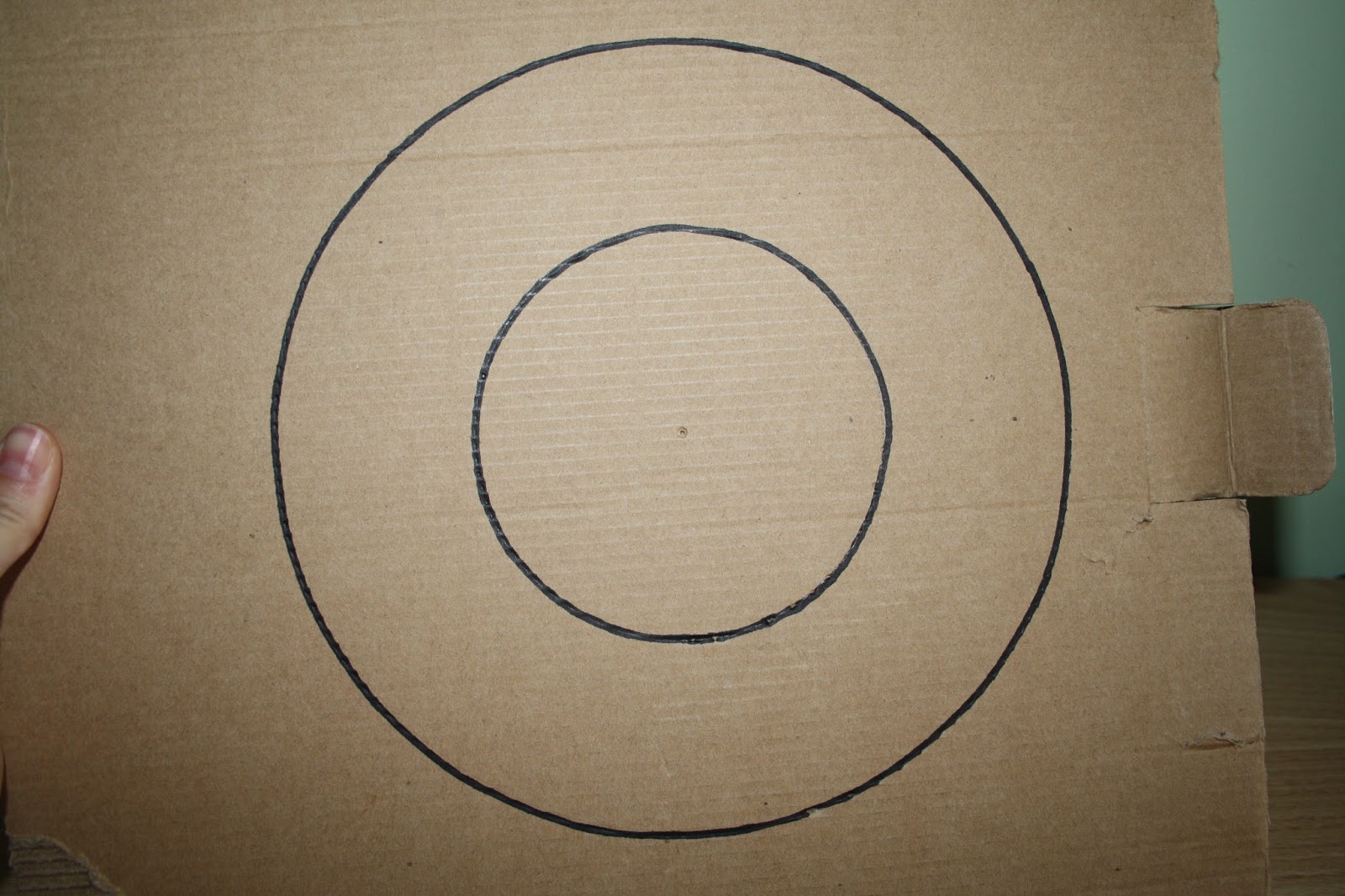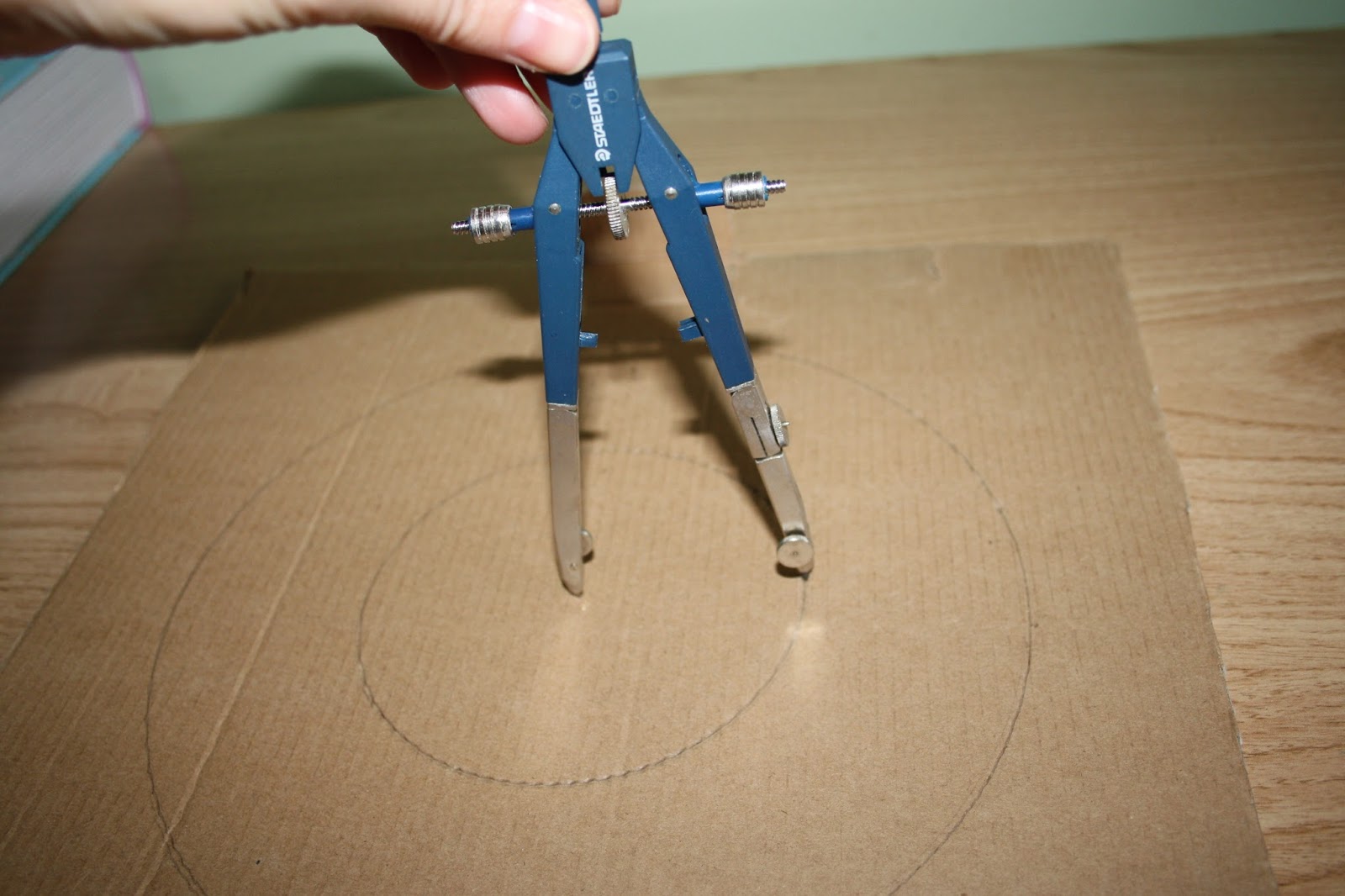 Empezamos marcando con el compás un círculo de 11 cms de diámetro aproximadamente. Haremos un circulo interior más pequeño.