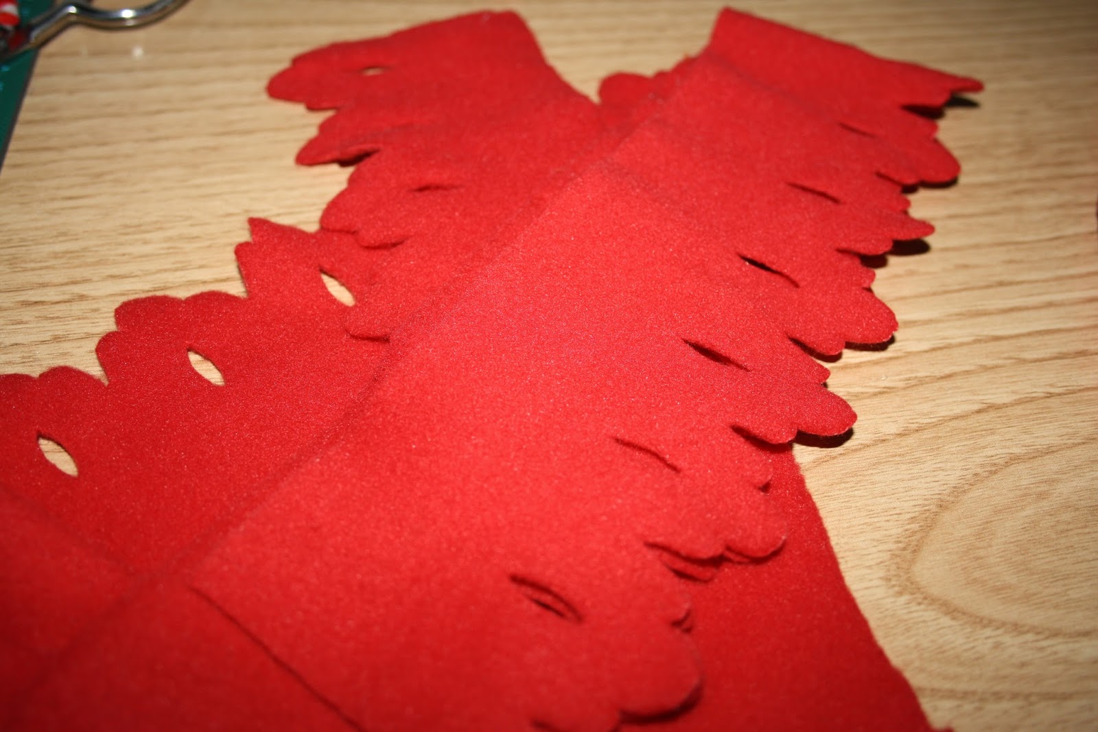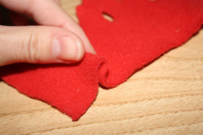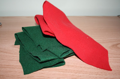 trozos de telas que tengáis por casa (en mi caso usé fieltro verde y poliéster rojo)