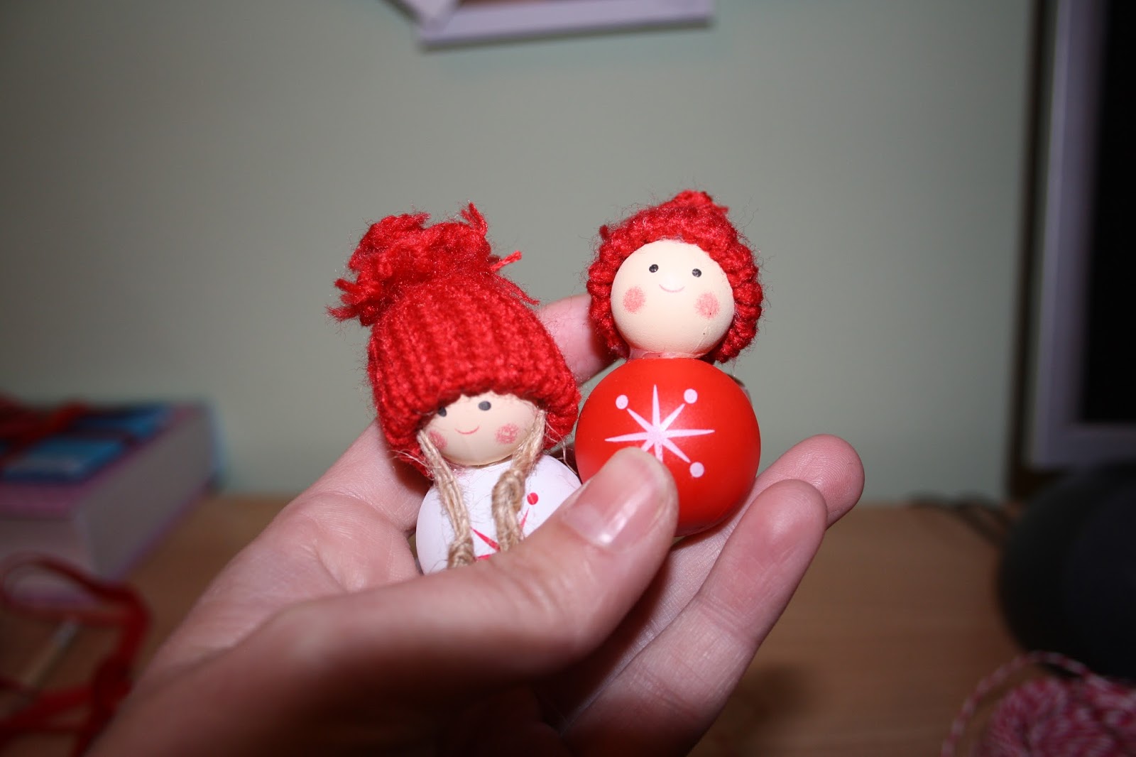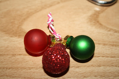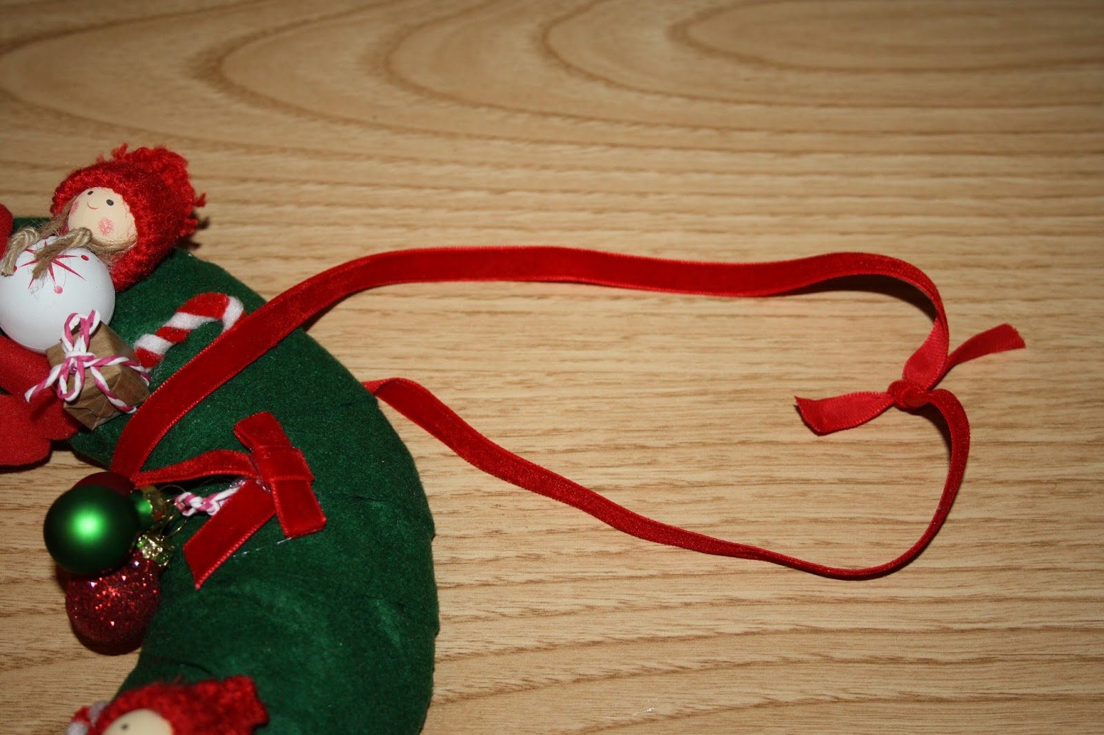 Y por último, añadí bolas de colores verdes y rojas y lazos de terciopelo.