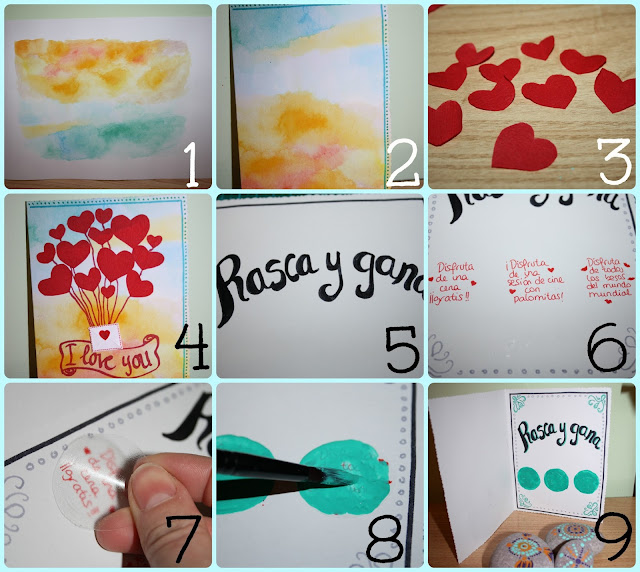 Ahora viene la parte divertida. Por dentro titulamos la tarjeta para que la persona a la que le regalemos el rasca, sepa lo que es. Podéis descargaros plantillas que tenéis por Internet; en mi caso, lo he hecho todo a mano.