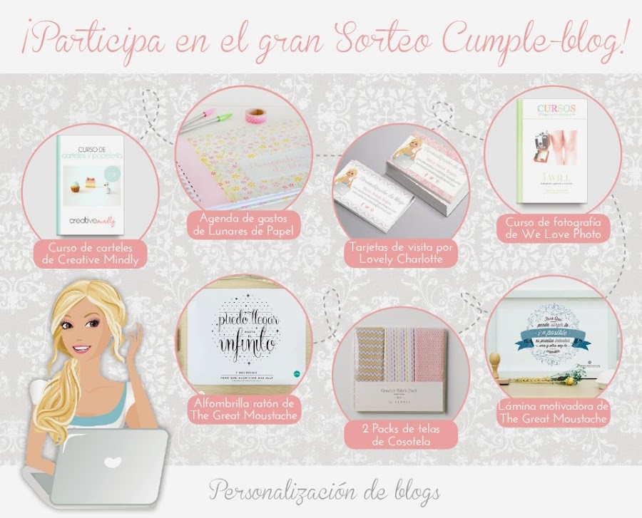 Estaba yo ayer por la tarde, trasteando con mi terremoto, cuando me dio por mirar los mails, y veo una mail de Personalización de Blogs: Blog con consejos y trucos para blogueras, y me digo, mira, la nueva entrada, y me pongo a leer el mail, y leo Hola Ana, y flipo, me digo, mira, ha personalizado los mails de las suscriptoras, que guay, y sigo leyendo, pero no, no era eso, me leo el mail de cabo a rabo, pienso un poco y lo vuelvo a releer, lo tuve que leer dos veces para creérmelo, me ha tocado el sorteo de su cumpleblog, estoy en una nube.