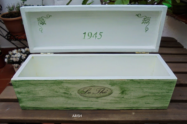 la idea ha sido intentar convertirla en una caja de té, aunque realmente lo que voy a guardar en ella no va a ser té precisamente, sino unos bonitos cubiertos que uso poco ya que el tamaño es el adecuado.