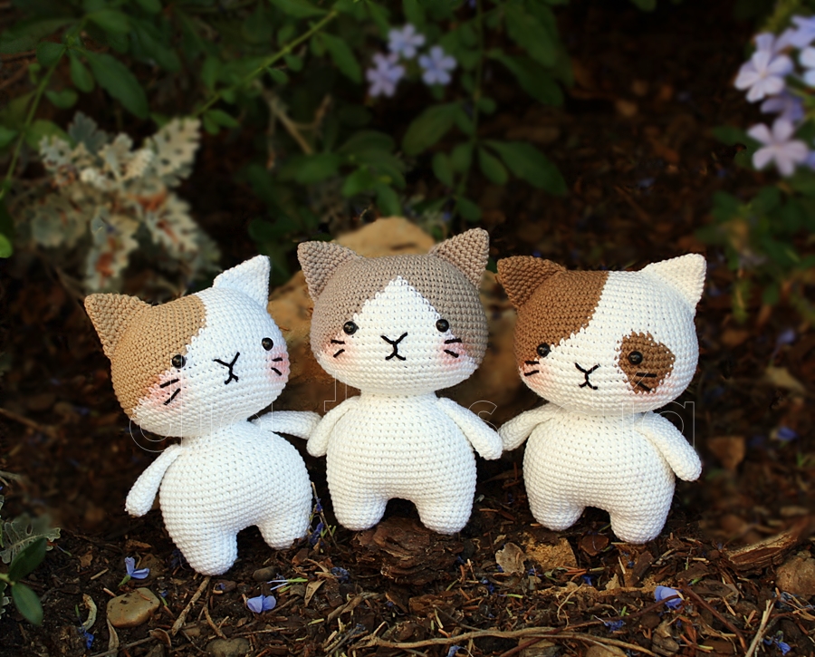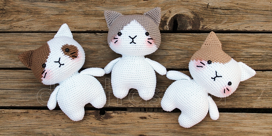 Sobre todo me parecieron encantadores sus gatos. Así que comencé haciendo estos gatitos tan simpáticos: