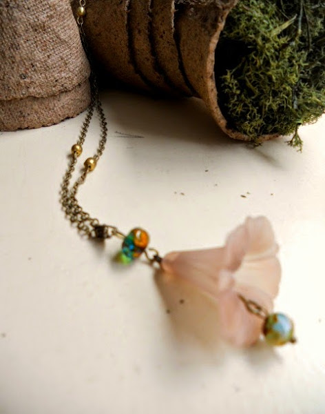 Colgantes con campanilla sintética y abalorios de metal y cristal checo.